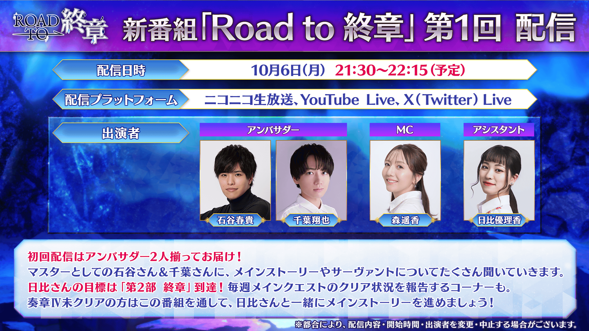 2025年9月24日(水)に配信した「Fate/Grand Order カルデア放送局 ライト版 ~ぐだぐだ新選組・ジ・エンド~」にて、スマートフォン向けFateRPG「Fate/Grand Order」をはじめとするFGO PROJECTに関する新情報を発表いたしました。