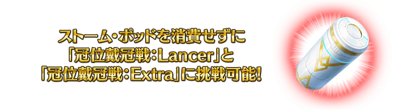 限定 「冠位戴冠戦:Lancer」&「冠位戴冠戦:Extra」のストーム・ポッド消費が0に!