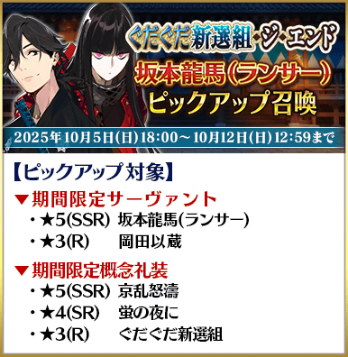 ◆「ぐだぐだ新選組・ジ・エンドピックアップ4召喚」期間◆