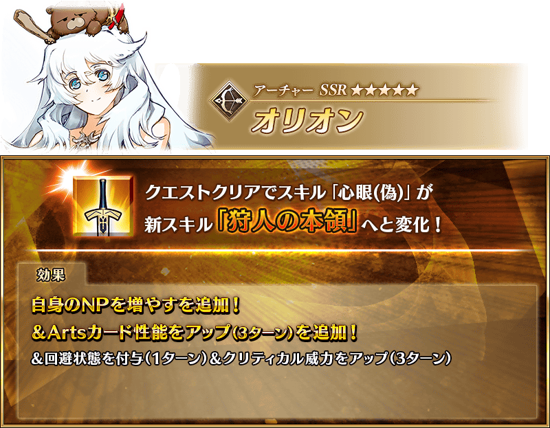 「★5(SSR)オリオン」「★5(SSR)ケツァル・コアトル」が強化される特別なクエスト「サーヴァント強化クエスト」が、カルデアゲートに恒常的に追加されます。