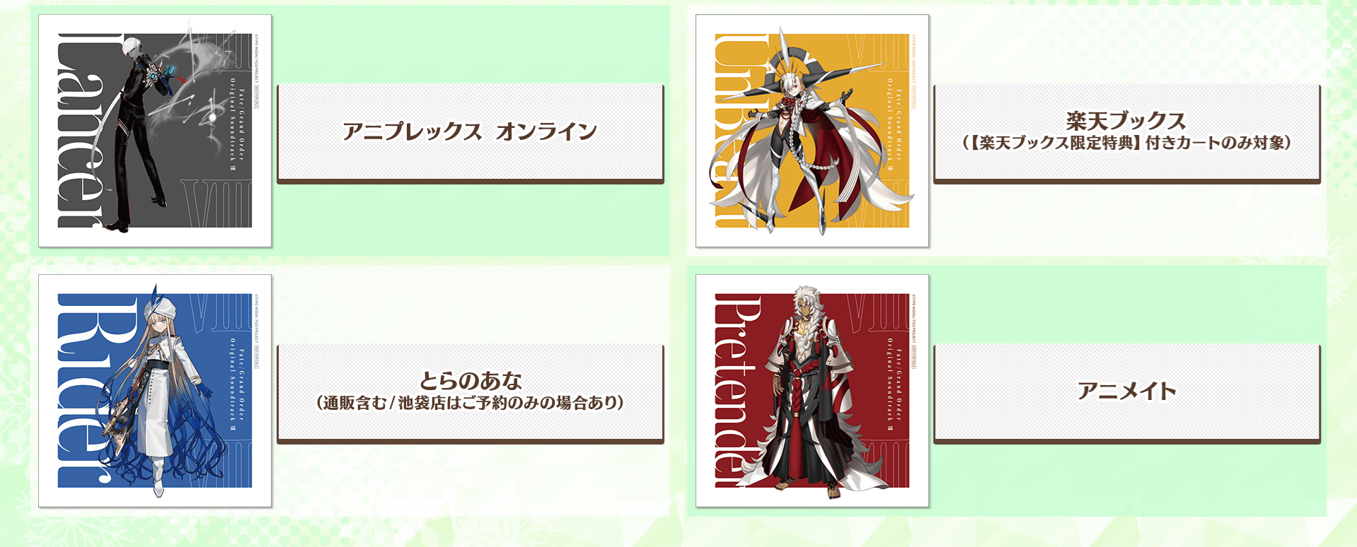 ◆「Fate/Grand Order Original Soundtrack Ⅷ」店舗別購入特典デザインを解禁!◆