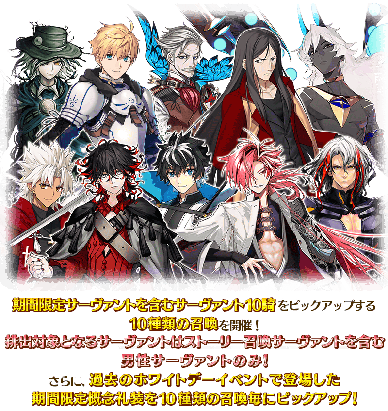 すべての召喚でサーヴァントはストーリー召喚サーヴァントを含む男性サーヴァントのみが排出対象となります!