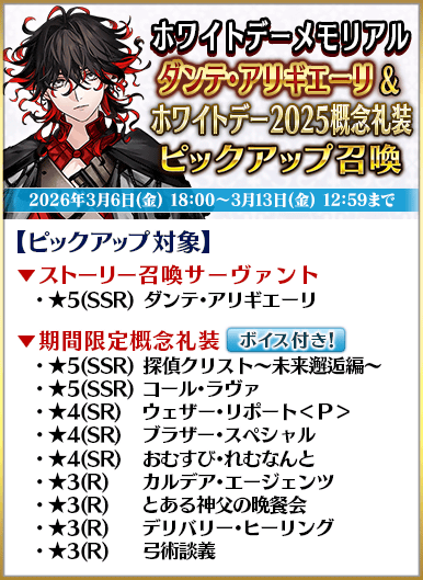 ダンテ・アリギエーリ&ホワイトデー2025概念礼装ピックアップ召喚