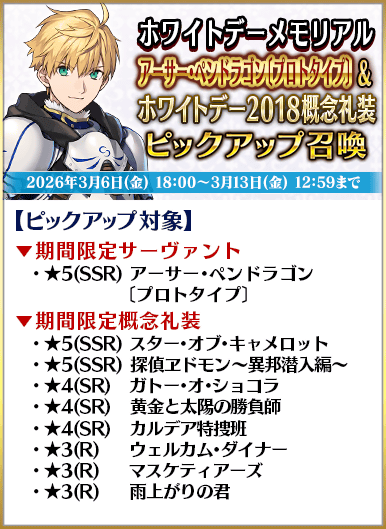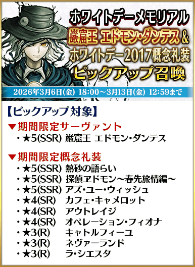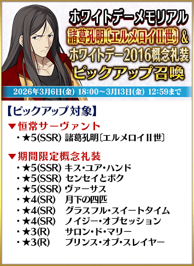 ◆「ホワイトデーメモリアルピックアップ召喚」期間◆