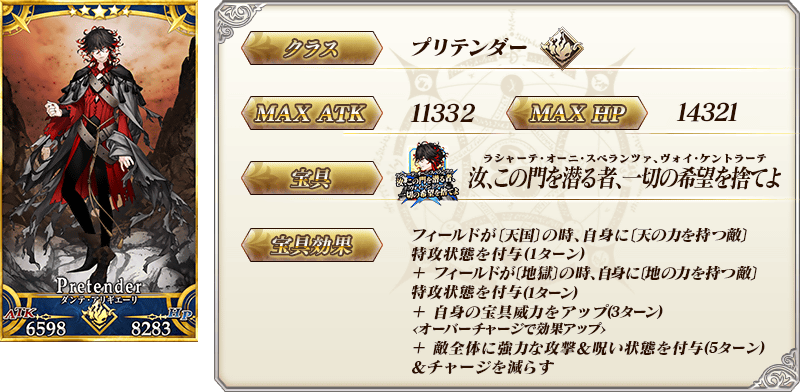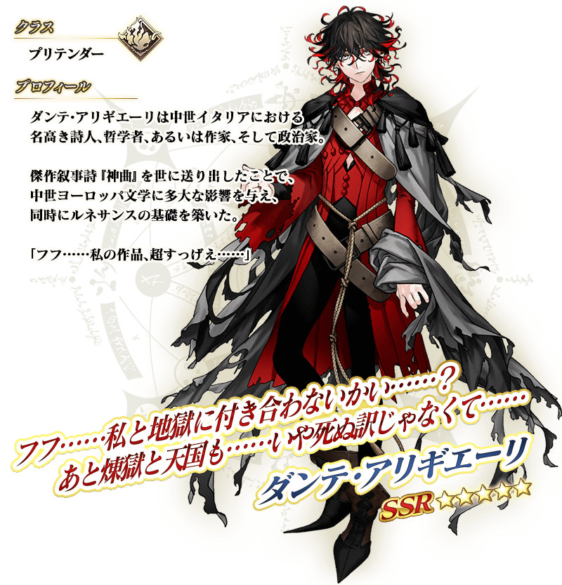 ※上記の「★5(SSR)ダンテ・アリギエーリ」のイラストとセイントグラフは霊基再臨第2段階のものです。