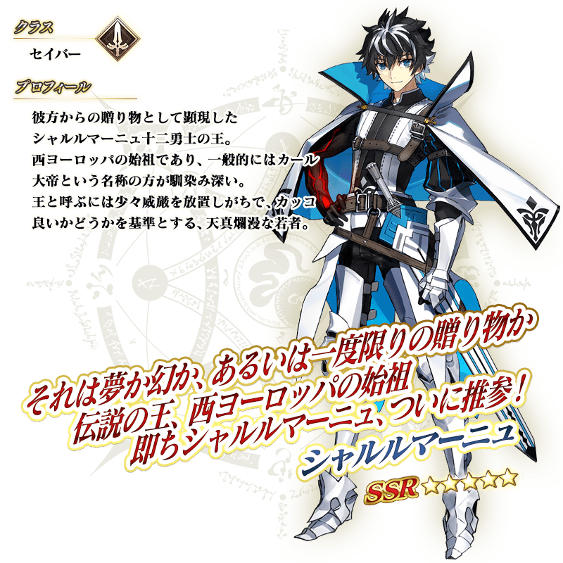 ※「★5(SSR)シャルルマーニュ」は、霊基再臨してもセイントグラフおよびバトルキャラなどが第2段階までしか変化しません。