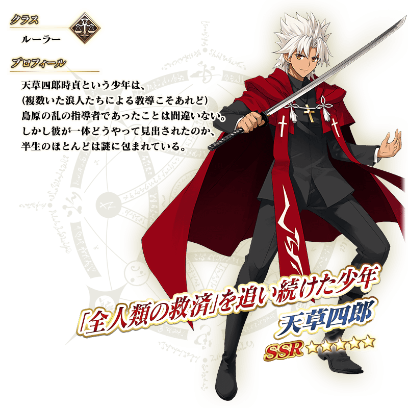 ※上記の「★5(SSR)天草四郎」のイラストとセイントグラフは霊基再臨第2段階のものです。
