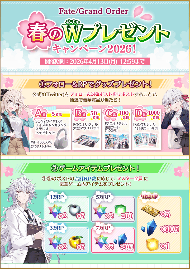 【追記・更新】【期間限定】「Fate/Grand Order 春の新米マスター応援キャンペーン2026!」開催!