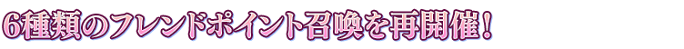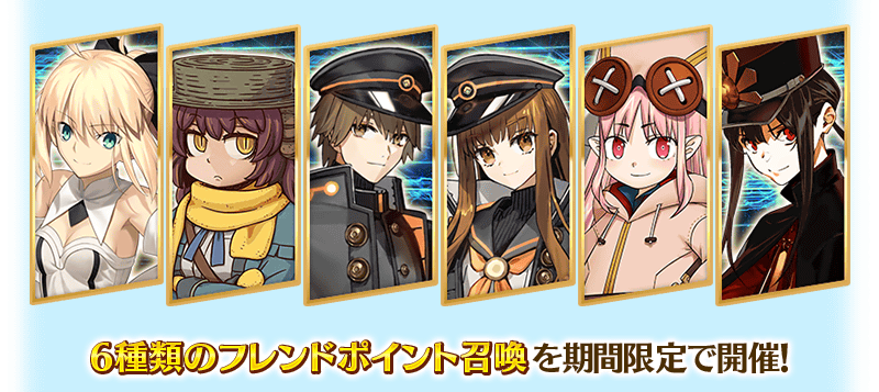 下記の期間中、クエスト開始時のサポート選択画面にて、サポートにほかのマスターのサーヴァントを選択した場合と、ほかのマスターが自身のサーヴァントをサポートに選択した場合、フレンドポイントの獲得量が2倍になります。