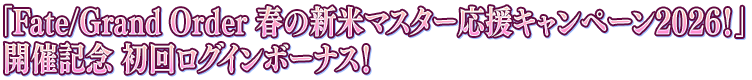 「Fate/Grand Order 春の新米マスター応援キャンペーン2026!」の開催を記念したログインボーナスを実施いたします。