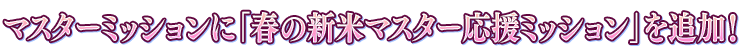 ■「春の新米マスター応援ミッション」に新たなミッションを追記!