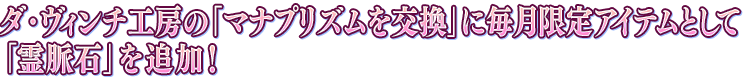2026年3月30日(月) 18:00より、ダ・ヴィンチ工房の「マナプリズムを交換」のラインナップに新しく「霊脈石」が追加!