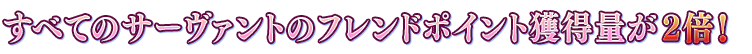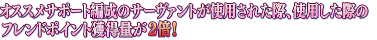 ※フレンドではないマスターに使用された場合、またはフレンドではないマスターのオススメサポート編成に設定されたサーヴァントを使用した場合もフレンドポイント獲得量2倍の対象となります。