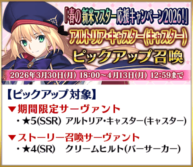 ◆『「春の新米マスター応援キャンペーン2026!」ピックアップ召喚』期間◆