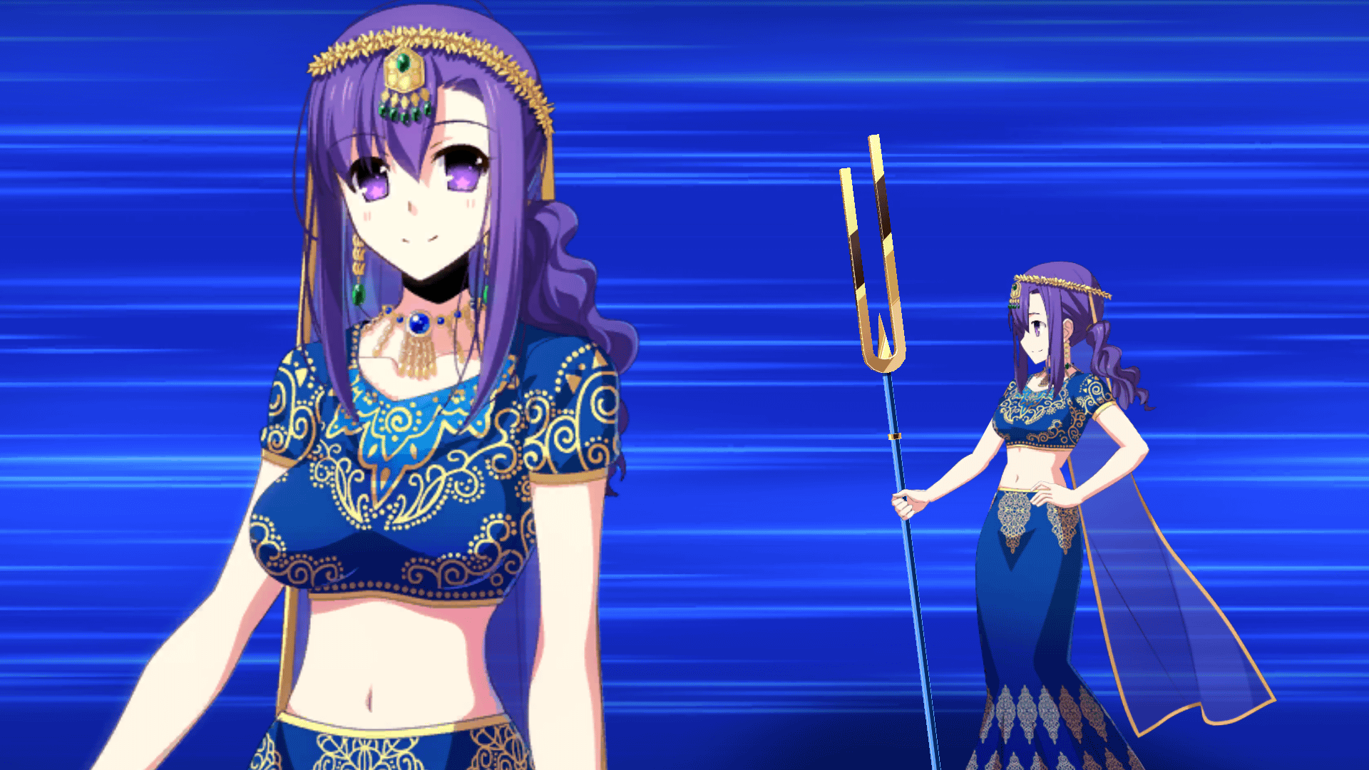 ※上記の「★5(SSR)カーマ(アヴェンジャー)」のイラストとセイントグラフは霊基再臨第2段階のものです。 ※「★5(SSR)カーマ(アヴェンジャー)」の宝具は再臨段階によって名称と演出が変化いたします。