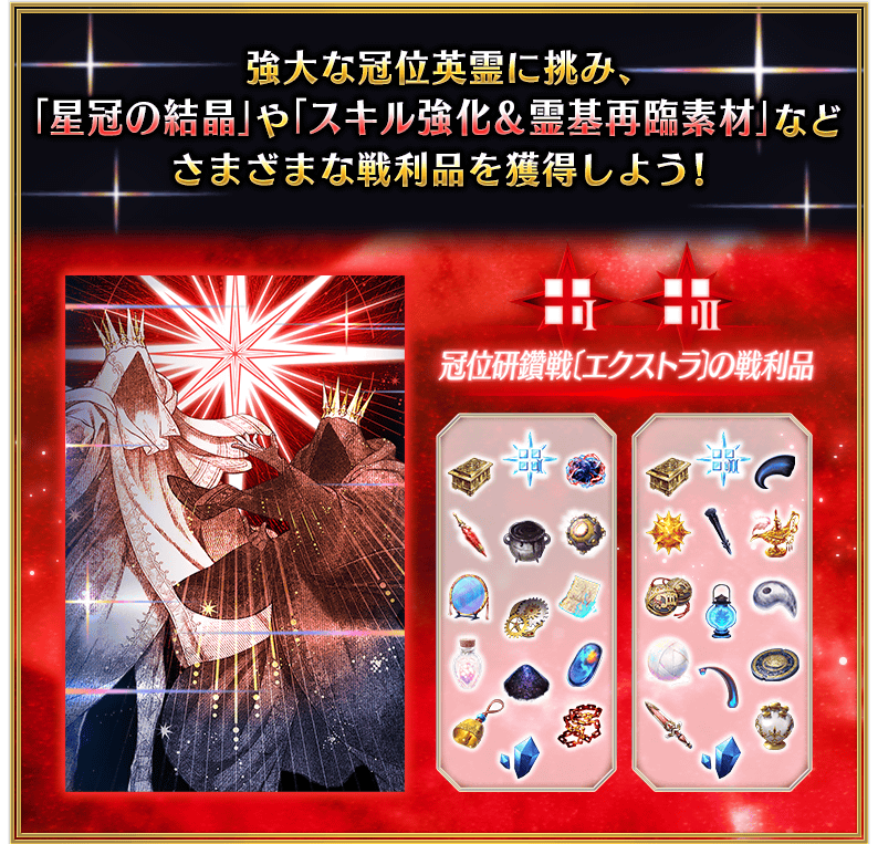 この機会にエクストラクラスのグランドサーヴァントを強化し、新章開放条件のひとつとなる「冠位認定戦」に挑みましょう!