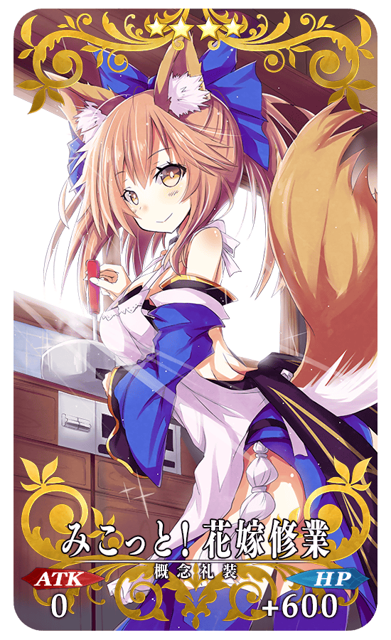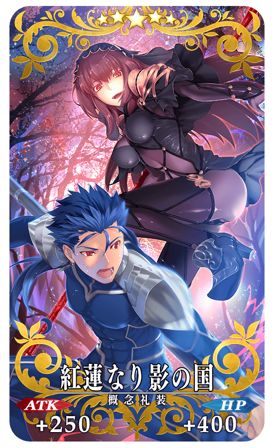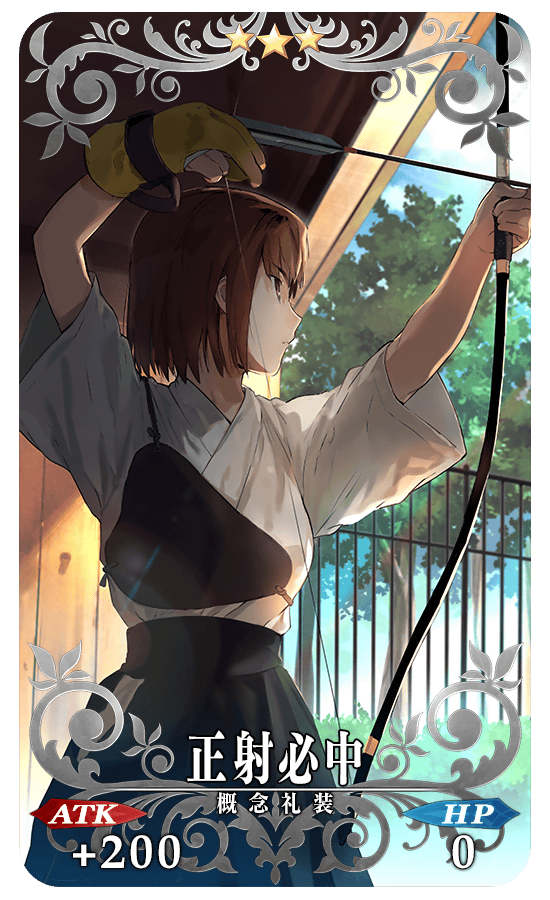 期間限定概念礼装「★5(SSR)紅蓮なり影の国」、「★4(SR)みこっと!花嫁修業」、「★3(R)正射必中」を装備することで、イベント専用アイテムの獲得数もアップします。