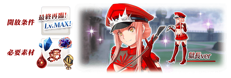 女王メイヴの霊衣「魅惑の獄長ルック」を開放するには、霊衣開放権に加え、以下の開放条件や素材がいくつか必要となります。