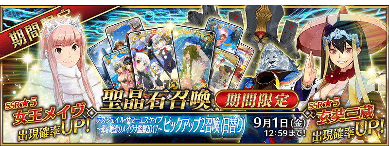 ※「出現確率アップ」とは同レアリティの他のサーヴァントおよび概念礼装より出現確率が高く設定されていることを意味します。