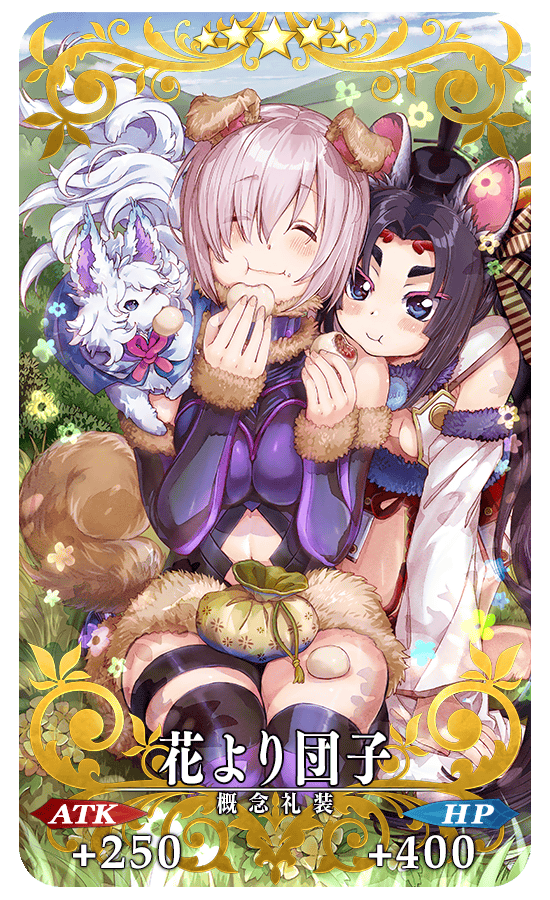 今回はマシュ・キリエライトが描かれている概念礼装から、期間限定で「★5(SSR)グランド・ニューイヤー」「★5(SSR)花より団子」「★5(SSR)デンジャラス・ビースト」「★5(SSR)カルデア・アニバーサリー」「★4(SR)ハロウィン・アレンジメント」を復刻ピックアップ!
