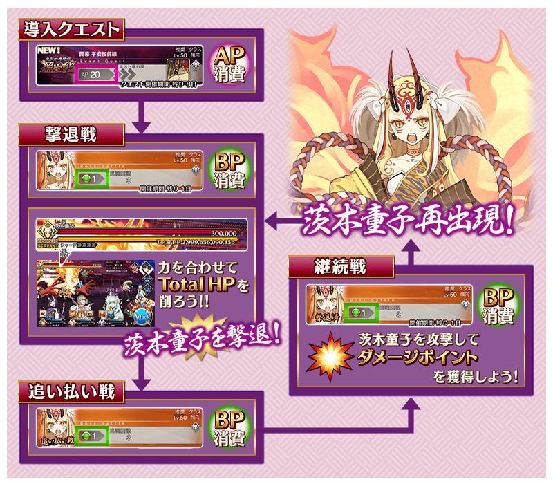 ※イベント参加時に、すでに茨木童子のTotal HPが0になっていた場合は「撃退戦」は出現しません。