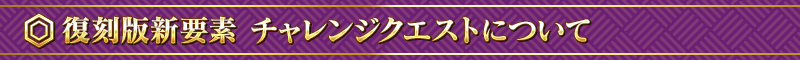 また、「終局特異点」および「復刻:鬼哭酔夢魔京 羅生門 ショート版」メインクエストをすべてクリアしたマスターのみが参加可能となるチャレンジクエストも追加しております。