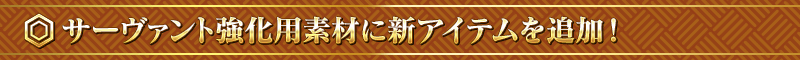 ※詳細につきましては次項の「サーヴァント強化素材に新アイテムを追加!」をご確認ください。