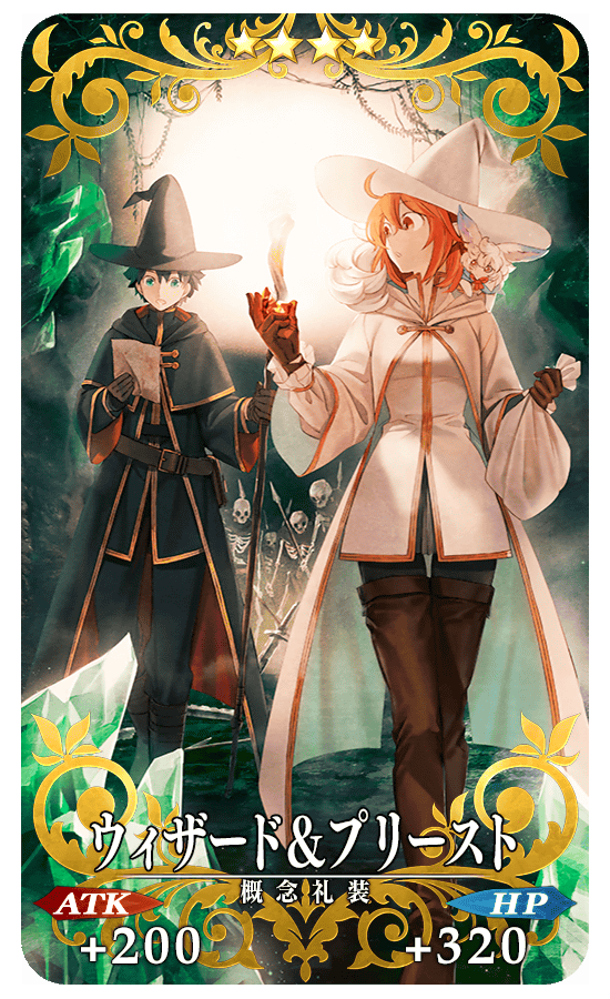 イベントアイテム交換にて入手できるイベント限定概念礼装「勇者エリちゃんの冒険」「ウィザード&プリースト」「マタ・ハリの酒場」を装備すると、イベント専用アイテムをドロップするエネミーの追加出現率がアップします。