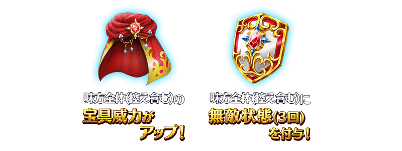 「勇者のマント」を使用すると、味方全体(控え含む)の宝具威力がアップします。