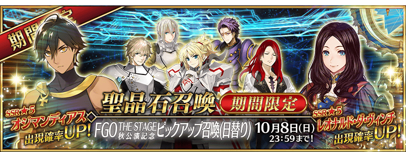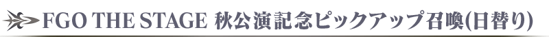 ◆「FGO THE STAGE 秋公演記念ピックアップ召喚(日替り)」期間◆