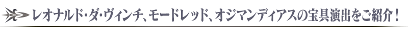 レオナルド・ダ・ヴィンチ、モードレッド(セイバー)、オジマンディアスの宝具演出を紹介いたします!