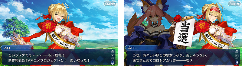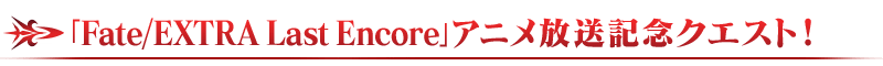 ※「Fate/EXTRA Last Encore」アニメ放送記念クエストにアドベンチャーパートはありませんのでご注意ください。