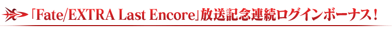 2018年1月28日(日) AM0:00より開始となりました「Fate/EXTRA Last Encore」放送を記念して、「Fate/EXTRA Last Encoreアニメ放送記念キャンペーン」を実施いたします!