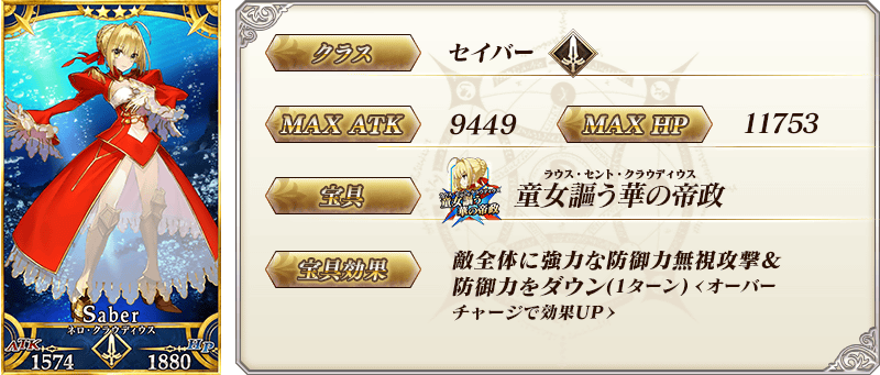 ※ピックアップ期間中、ネロ・クラウディウス(セイバー)は第二特異点クリア前でも排出されます。