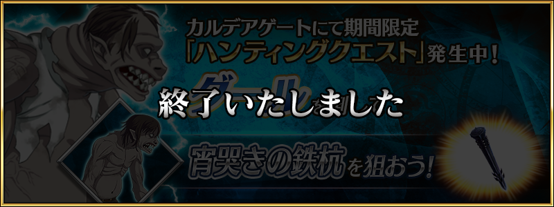 開催期間中、特定のエネミーを対象としたハンティングクエストが順番にカルデアゲートに出現します。