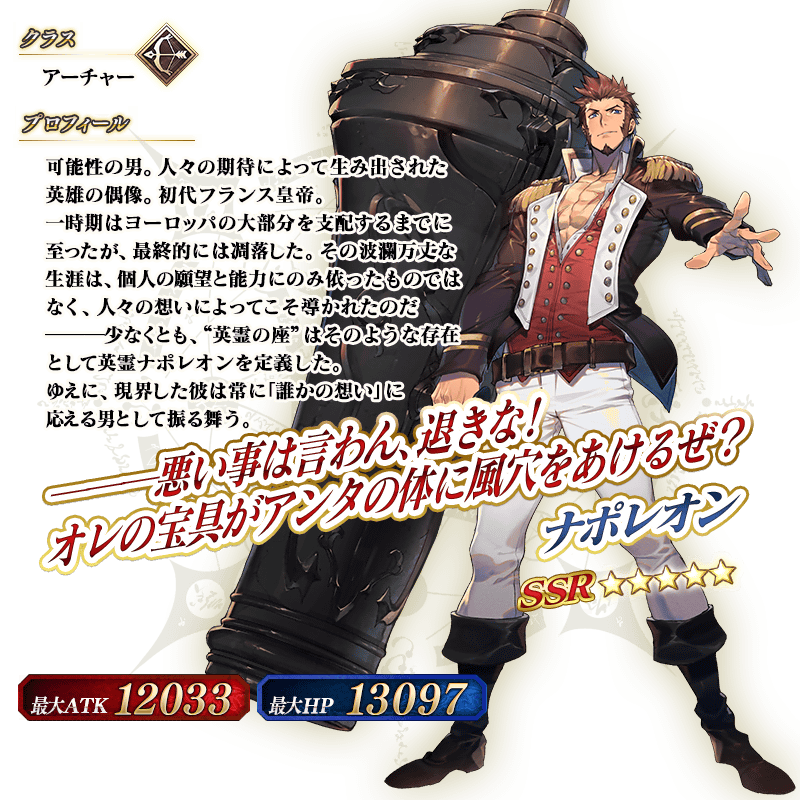 ※「★5(SSR)ナポレオン」「★5(SSR)アナスタシア」「★4(SR)蘭陵王」「★4(SR)秦良玉」はピックアップ期間終了後もストーリー召喚にて排出されます。