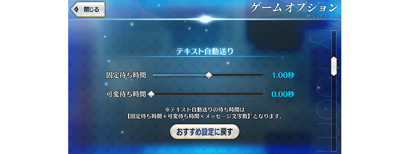 テキスト自動送りの待ち時間=固定待ち時間+可変待ち時間×メッセージ文字数
