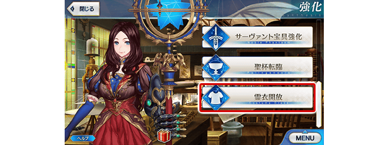 「霊衣開放」は強化画面よりおこなえます。