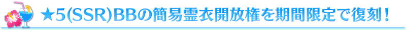 ※今回復刻される「★5(SSR)BB」の霊衣は外見のみ変化し、ボイスは変化しない「簡易霊衣」です。