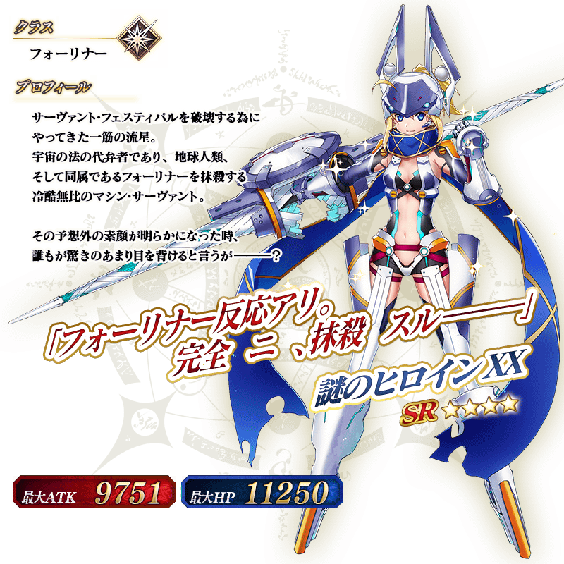 ※上記の「★4(SR)謎のヒロインXX(フォーリナー)」のイラストは霊基再臨第2段階のものです。