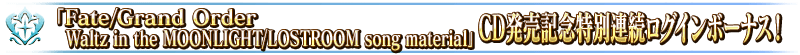 「Fate/Grand Order Waltz in the MOONLIGHT/LOSTROOM song material」の発売を記念した特別連続ログインボーナスを実施いたします。