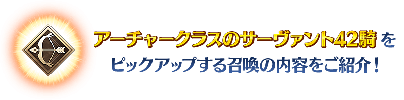 ※★4(SR)以上確定にはサーヴァントと概念礼装が含まれます。 ※アーチャークラス以外のサーヴァントも排出されますのでご注意ください。 ※2019年1月1日(火) 0:00以降に新たに配信されるメインストーリー、期間限定イベント、一部クエスト、キャンペーンおよび召喚では、真名隠し対象サーヴァントの真名が表示されます。