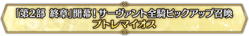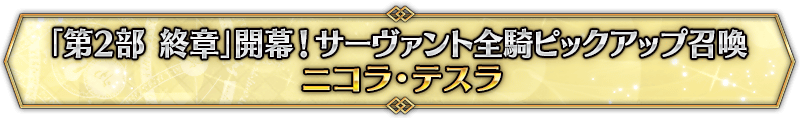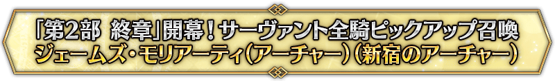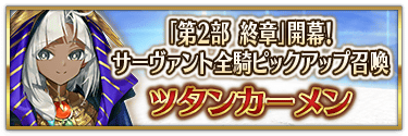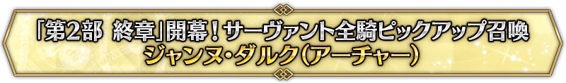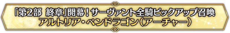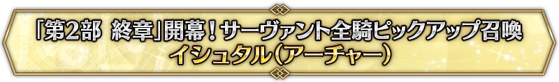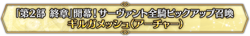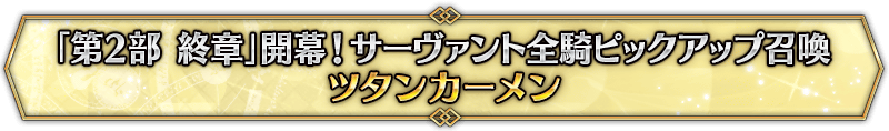 なお、本召喚は『「第2部 終章」開幕! サーヴァント全騎ピックアップ召喚』ピックアップスケジュールに記載された日程で召喚内容が切り替わりますが、開催期間内において複数回おこなわれる同名ピックアップ召喚は召喚回数がリセットされずに引き継がれます。