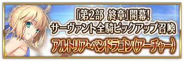 『「第2部 終章」開幕!サーヴァント全騎ピックアップ召喚 アルトリア・ペンドラゴン(セイバー)』における「確定召喚期間」の表示例