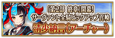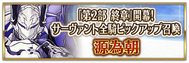 ※『「第2部 終章」開幕! 英霊極点ピックアップ召喚』では、該当サーヴァントはピックアップ対象ではございません。