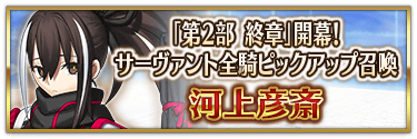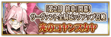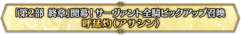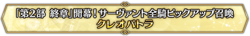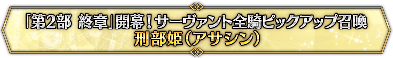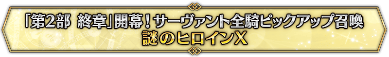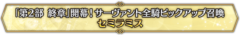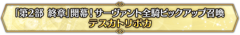 なお、本召喚は『「第2部 終章」開幕! サーヴァント全騎ピックアップ召喚』ピックアップスケジュールに記載された日程で召喚内容が切り替わりますが、開催期間内において複数回おこなわれる同名ピックアップ召喚は召喚回数がリセットされずに引き継がれます。