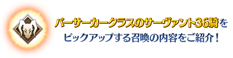 ※★4(SR)以上確定にはサーヴァントと概念礼装が含まれます。 ※バーサーカークラス以外のサーヴァントも排出されますのでご注意ください。 ※2019年1月1日(火) 0:00以降に新たに配信されるメインストーリー、期間限定イベント、一部クエスト、キャンペーンおよび召喚では、真名隠し対象サーヴァントの真名が表示されます。