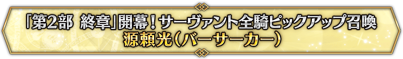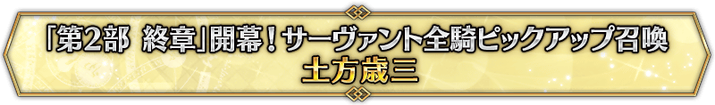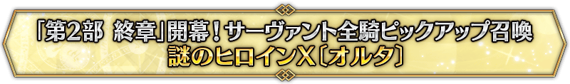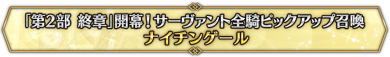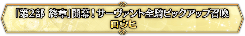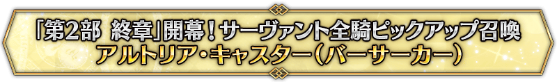なお、本召喚は『「第2部 終章」開幕! サーヴァント全騎ピックアップ召喚』ピックアップスケジュールに記載された日程で召喚内容が切り替わりますが、開催期間内において複数回おこなわれる同名ピックアップ召喚は召喚回数がリセットされずに引き継がれます。