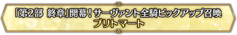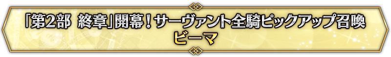 なお、本召喚は『「第2部 終章」開幕! サーヴァント全騎ピックアップ召喚』ピックアップスケジュールに記載された日程で召喚内容が切り替わりますが、開催期間内において複数回おこなわれる同名ピックアップ召喚は召喚回数がリセットされずに引き継がれます。