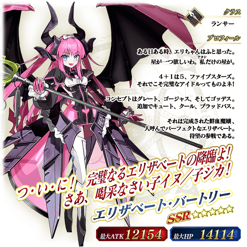 ※上記の「★5(SSR)エリザベート・バートリー」のイラストは霊基再臨第3段階のものです。